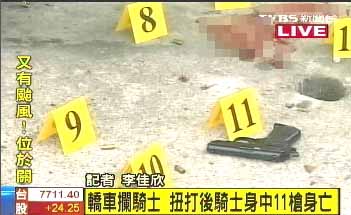 洪姓男子抵抗不從,其中1人即連續(xù)對他開槍,直到洪姓男子倒地后,兇手即將槍枝棄置現(xiàn)場,搭乘另一輛車逃逸。洪姓男子滿身鮮血倒臥在大馬路上,趕來的救護(hù)人員連忙把他送到奇美醫(yī)院急救,無奈傷勢太嚴(yán)重,身中11槍、幾乎槍槍對準(zhǔn)了前胸,猶如行刑式槍殺!