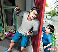 田嫌就讀6年級的堂弟回家,田嫌拒開門,要他去玩1小時再回家。圖片來源:臺灣《蘋果日報》
