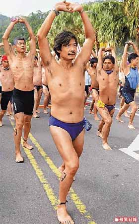 民進黨“立委”蔡同榮自覺身材不錯,想和金溥聰一比高下。 來源:臺灣“今日新聞網”
