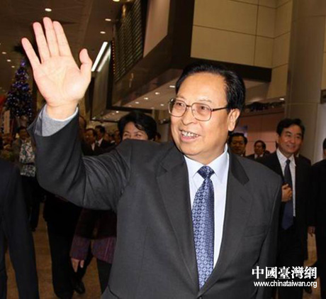 徐光春在臺(tái)北桃園機(jī)場(chǎng)接受媒體的采訪。圖片來(lái)源:河南省臺(tái)辦