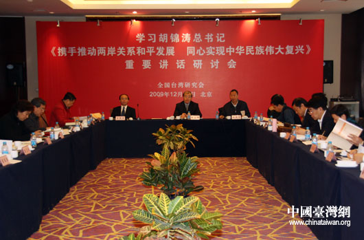 中國臺灣網(wǎng)12月17日北京消息 今天上午,全國臺灣研究會在此間召開研討會,來自北京、上海、廈門等全國各大高校、研究機構的二十余位知名臺灣問題專家學者與會,就學習胡錦濤總書記《攜手推動兩岸關系和平發(fā)展 同心實現(xiàn)中華民族偉大復興》重要講話進行了探討和交流。