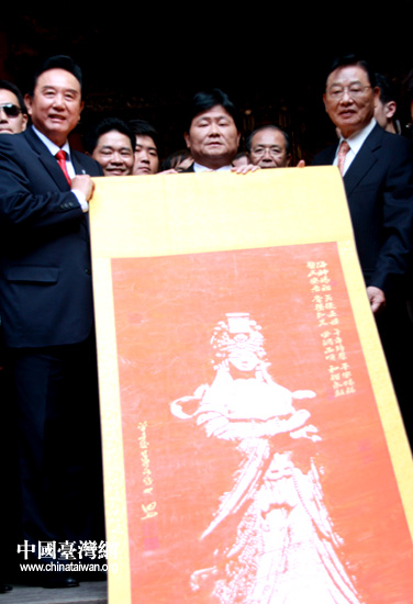 陳云林回贈(zèng)顏清標(biāo)一幅媽祖畫像。 (中國臺灣網(wǎng) 李徽 攝)