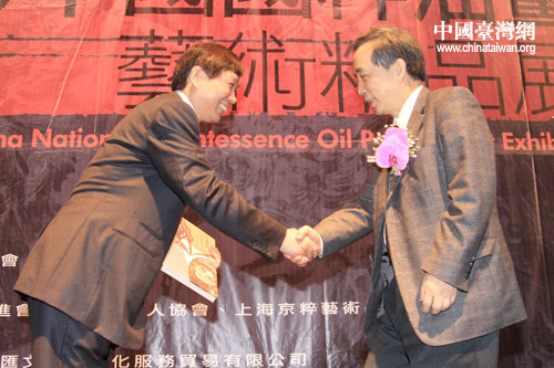 中國臺灣網(wǎng)1月30日臺北消息 2010中國國粹油畫藝術(shù)精品展30日上午在臺北市孫中山紀念館隆重開幕。中華全國臺灣同胞聯(lián)誼會會長梁國揚、;鶗麻L江丙坤等兩岸知名人士,以及來自兩岸的數(shù)十位書畫藝術(shù)家,出席了開幕式。