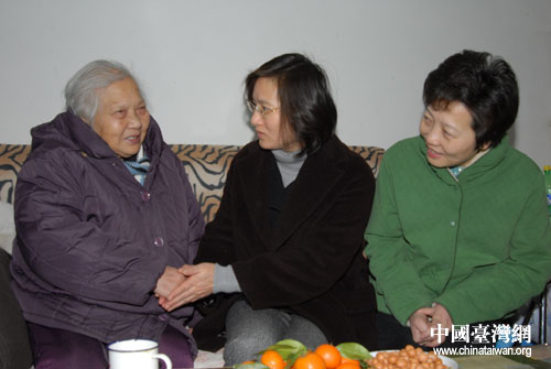 中國臺灣網(wǎng)2月5日上海消息 今日上午,上海市婦聯(lián)、上海市臺聯(lián)登門慰問年逾八旬的臺胞老張硯,為這位“李鐵梅”式的革命女戰(zhàn)士送上新春祝福。上海市婦聯(lián)副主席朱鳴握著老人的手說:“老人家一生歷盡坎坷,為新中國的成立作出了許多貢獻(xiàn),您是我們后輩學(xué)習(xí)的榜樣!睆埑幚先烁吲d地說:“感謝黨和政府的關(guān)懷。昨天聽說你們要來,我忍不住掉了眼淚,這是高興的淚水!我這一生堅(jiān)持追隨共產(chǎn)黨,共產(chǎn)主義是我終身不變的信仰!”