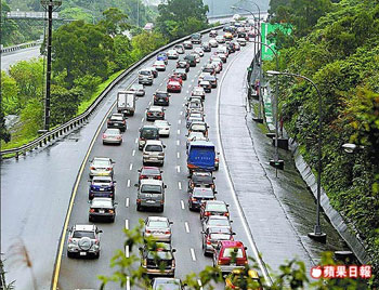 臺灣高速公路昨涌現(xiàn)出游和提前北返車潮。來源:臺灣《蘋果日報》