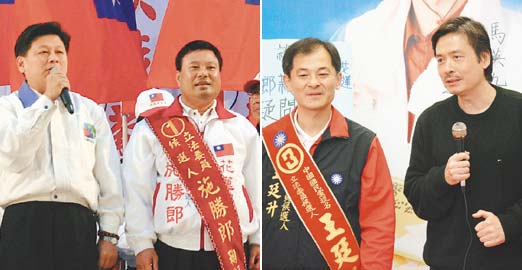 臺(tái)媒:花蓮縣“立委”補(bǔ)選,戰(zhàn)火已升高為國(guó)民黨秘書長(zhǎng)金溥聰(右圖右)與花蓮縣長(zhǎng)傅昆萁(左圖左)的對(duì)決。金溥聰昨天在國(guó)民黨籍“立委”候選人王廷升記者會(huì)中,抨擊傅昆萁若以泛藍(lán)正統(tǒng)自居,就不該支持無(wú)黨籍候選人施勝郎。但傅昆萁仍表態(tài)力挺施勝郎,金溥聰昨晚決定“全面正面迎戰(zhàn)”。 來(lái)源:臺(tái)灣《聯(lián)合報(bào)》