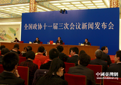今天下午三點(diǎn),全國(guó)政協(xié)十一屆三次會(huì)議在人民大會(huì)堂金色大廳召開首場(chǎng)新聞發(fā)布會(huì)。(中國(guó)臺(tái)灣網(wǎng) 高斯斯 攝)