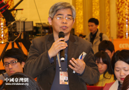 2日下午,全國政協(xié)十一屆三次會議召開首場新聞發(fā)布會。圖為臺灣《中國時(shí)報(bào)》記者提問。(中國臺灣網(wǎng) 高斯斯 攝)
