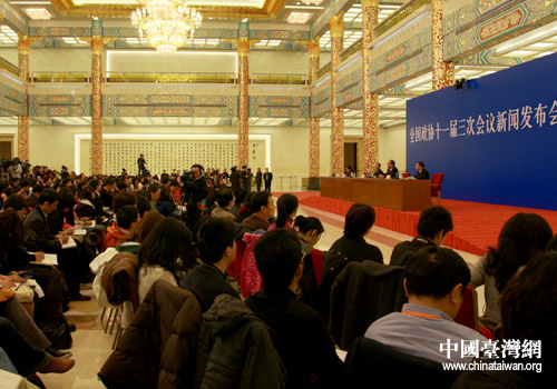 3月2日下午,全國政協(xié)十一屆三次會(huì)議召開首場新聞發(fā)布會(huì)。(中國臺(tái)灣網(wǎng) 張弛 攝)