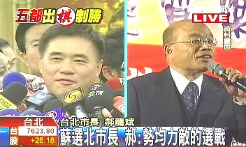 中國臺灣網(wǎng)3月3日消息 據(jù)臺灣TVBS電視臺報(bào)道,蘇貞昌將宣布參選臺北市長,而競爭對手、爭取連任的郝龍斌,認(rèn)為雖然民調(diào)起起伏伏,但這是一場勢均力敵的選戰(zhàn)。