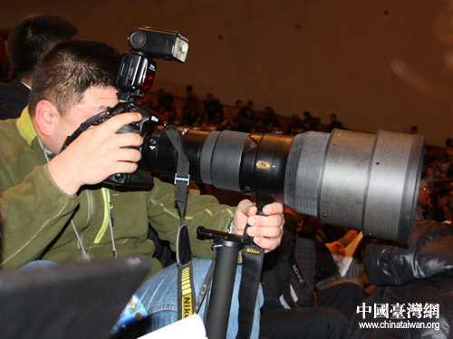 全國(guó)人大十一屆三次會(huì)議上正在拍攝新聞圖片的記者。ㄖ袊(guó)臺(tái)灣網(wǎng) 胡珊珊 攝)