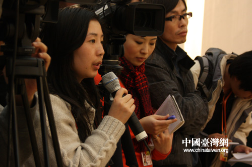 圖為本網(wǎng)記者向臺籍代表們提問 (中國臺灣網(wǎng) 徐維彬 攝)