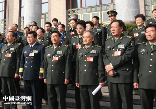 13日上午,全國(guó)政協(xié)十一屆三次會(huì)議勝利閉幕。這是解放軍界別委員在人民大會(huì)堂前合影。(中國(guó)臺(tái)灣網(wǎng) 高斯斯 攝)