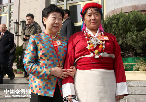 13日上午,全國(guó)政協(xié)十一屆三次會(huì)議勝利閉幕。這是委員們?cè)谌嗣翊髸?huì)堂前合影留念。(中國(guó)臺(tái)灣網(wǎng) 高斯斯 攝)