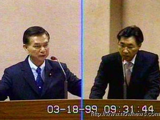 女婿臺當(dāng)局“新聞局長”江啟臣(右)接受岳父民代劉盛良(左)的質(zhì)詢。 來源臺灣“今日新聞網(wǎng)”