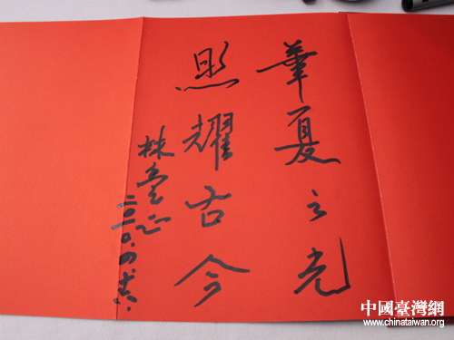 林豐正為黃帝故里題詞:華夏之光,照耀古今。圖片來源:河南省臺(tái)辦