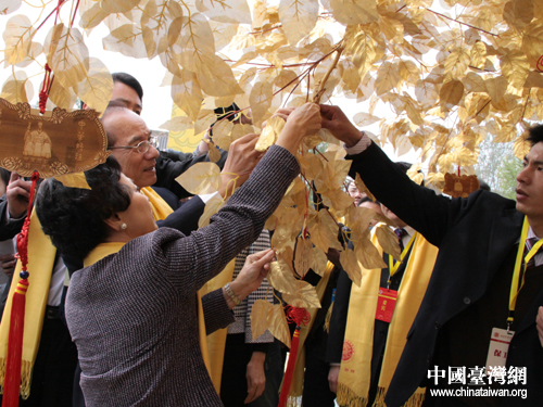 林豐正與夫人祈福樹下許愿。圖片來源:河南省臺辦