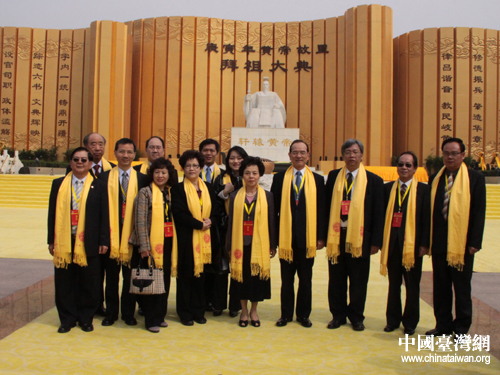 應(yīng)邀出席黃帝故里拜祖大典的中國國民黨副主席林豐正一行合影。圖片來源:河南省臺辦