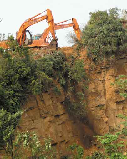 上午,挖土機(jī)爬到最頂端清除土方。圖片來源:臺(tái)灣《聯(lián)合晚報(bào)》