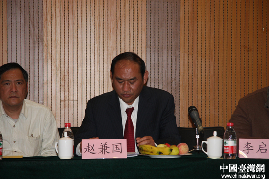 臺商——濟寧得亞利聚合體有限公司董事長趙兼國發(fā)言(圖片來源:兩岸關(guān)系雜志社)