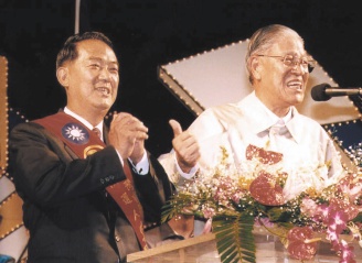 李登輝(右)與親民黨主席宋楚瑜(左),曾經(jīng)情同父子,也曾經(jīng)反目成仇,兩人政壇交手?jǐn)?shù)十年,證明“政治沒有永遠(yuǎn)的敵人”。資料照片