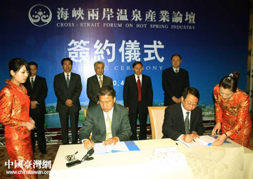 來自臺灣的相關(guān)企業(yè)與商河縣政府簽約溫泉綜合開發(fā)與利用合作協(xié)議。圖片來源:濟南市臺辦