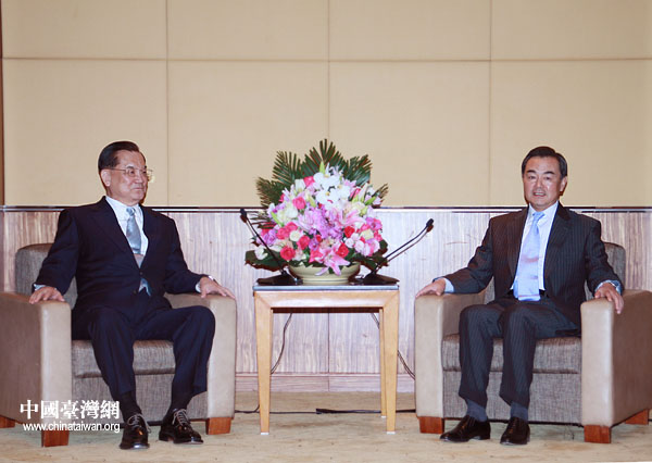 4月29日,中共中央臺辦、國務(wù)院臺辦主任王毅在上海會見中國國民黨榮譽(yù)主席連戰(zhàn)一行。(中國臺灣網(wǎng) 鐘寶華 攝 )
