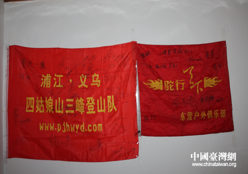 驢友們留下的隊旗和感言。(中國臺灣網(wǎng) 高斯斯 攝)