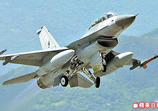臺(tái)軍一架F-16戰(zhàn)斗機(jī)上月與民用的空照機(jī)一度發(fā)生“隔離不足”。圖片來(lái)源:臺(tái)灣《蘋果日?qǐng)?bào)》