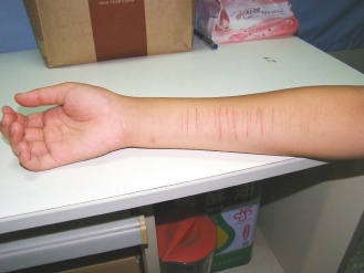 學(xué)校輔導(dǎo)室老師昨天找小雅、小娟等人了解事件經(jīng)過,發(fā)現(xiàn)小雅右臂有密集刀痕,嚇了一跳。小雅一臉不在乎說:“割手腕又不會(huì)死人,兩年來(lái)我已經(jīng)割了200多刀。”
