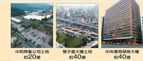 “中央投資公司”持有的多筆不動產(chǎn)最具價值,尤其是臺北車站旁的產(chǎn)物保險大樓、捷運雙子星大樓預(yù)定地及中和齊魯公司土地,若開發(fā)得當(dāng),至少值百億元以上。