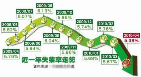 臺“主計處”第四局副局長劉天賜說,上月失業(yè)率為5.39%,相當(dāng)于59萬3000人失業(yè),創(chuàng)去年2月以來新低,單月下降幅度則是1994年10月以來最大的一次,顯示廠商聘雇意愿大增,其中新增就業(yè)主要是制造業(yè)2萬五5000人和營造業(yè)1萬1000人。