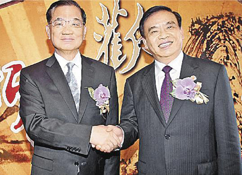 “2010臺灣·浙江經(jīng)貿(mào)文化合作論壇”昨日登場,浙江省長呂祖善(右)與中國國民黨榮譽主席連戰(zhàn)于論壇現(xiàn)場握手合影。圖片來源:臺灣《旺報》