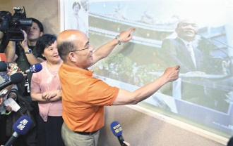蘇貞昌昨天首度開放酷炫的競選辦公室,大門一推開,就看見一片屏幕墻,比照高科技,蘇貞昌可以手控方式“玩照片”,只要手一碰,屏幕就會顯示市民意見。