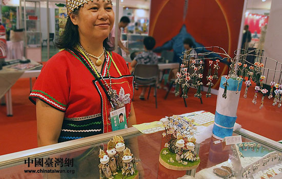 圖為第三屆海峽兩岸文博會臺灣文創(chuàng)展區(qū)內(nèi),臺灣少數(shù)民族手工藝者在展示作品。(中國臺灣網(wǎng) 張弛 攝)
