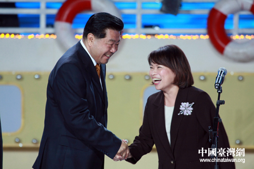 以“擴(kuò)大民間交流、加強(qiáng)兩岸合作、促進(jìn)共同發(fā)展”為主題的第二屆海峽論壇今晚19時(shí)30分在廈門會(huì)展中心隆重開幕,中共中央政治局常委、全國(guó)政協(xié)主席賈慶林與中國(guó)國(guó)民黨副主席、嘉義市市長(zhǎng)黃敏惠握手。(中國(guó)臺(tái)灣網(wǎng) 鐘寶華 攝)