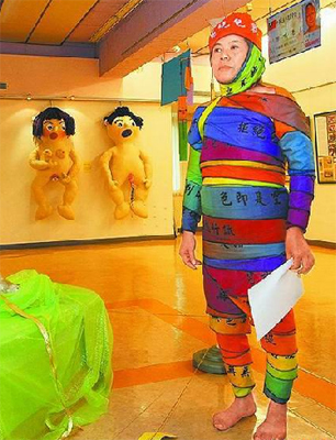 中國臺灣網(wǎng)6月21日消息 據(jù)臺灣《蘋果日報》報道,臺灣肉販兼行為藝術表演工作者阮仁珠、呂健志酷愛裸體表演,昨日中午兩人在高雄市社會局婦女館“脫序”演出。阮仁珠以彩色絲布包裹全身,由呂健志動手拆解,3分多鐘后全裸露出身體,高雄市社會局婦女館人員嚇得抓布飛撲替她遮掩,阮仁珠不滿指控:“社會太荒謬!錯把裸體當色情!”稱將拜訪高雄市長陳菊并邀她看展。