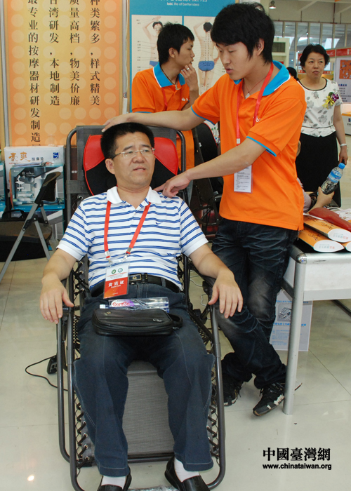 觀眾親身體驗高科技電器帶來的舒適 (中國臺灣網(wǎng) 王偉 攝)