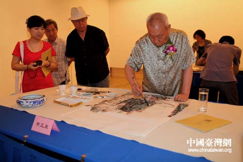 北京海峽兩岸書畫聯(lián)誼會副會長黃正襄現(xiàn)場作畫(中國臺灣網(wǎng) 李典典攝)
