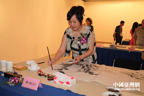 國畫大師黃君璧之女黃湘詅現(xiàn)場作畫(中國臺灣網(wǎng) 李典典攝)