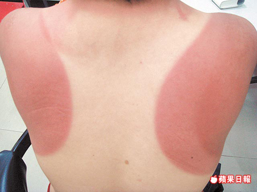 一男子穿著背心在烈日下騎車,導(dǎo)致背部被嚴重曬傷。圖片來源:臺灣《蘋果日報》