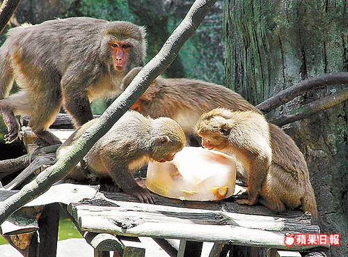 臺北市動物園提供冰品讓臺灣獼猴消暑。圖片來源:臺灣《蘋果日報》