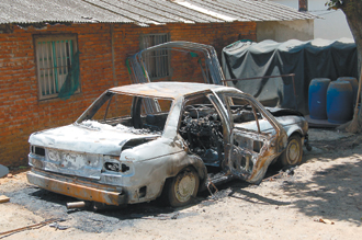 “立委”黃仁杼的堂弟黃仁晃自焚的轎車。(圖:聯(lián)合報(bào))