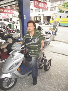 肢障的馬老板為了抵抗被砍,拿起助行器抵擋,并騎著殘障機車追歹徒。圖片來源:臺灣《聯(lián)合報》