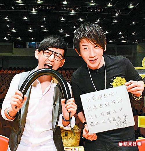 劉謙(右)接受黃子佼《佼個朋友吧》節(jié)目專訪。圖片來源:臺灣《蘋果日報》