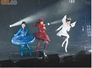 S.H.E昨晚分別以紅、藍(lán)、白服裝出場,連續(xù)邊唱邊跳三首快歌,更有不少火辣動作惹的歌迷瘋狂尖叫,三人更在安可曲時,感性答謝歌迷“我們的汗為你而流!”但是,全場卻不見Selina律師未婚夫Richard與Ella緋聞男友趙子懿;先前更爆出趙子懿趁Ella不在臺灣時偷吃。演唱會結(jié)束后,三人接受媒體訪問時,她僅淡淡表示“那是私事,不便回答!盨elina更護(hù)著Ella,自爆與未婚夫的婚事正在進(jìn)行中,借以轉(zhuǎn)移焦點。