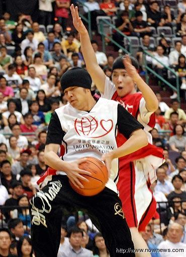 中國(guó)臺(tái)灣網(wǎng)7月29日消息 據(jù)臺(tái)灣媒體報(bào)道,姚明登高一呼,“周董”周杰倫、“小豬”羅志祥昨率10名藝人,參加“2010姚基金慈善之旅”臺(tái)北站慈善表演賽。周董、小豬在NBA球星面前不改“愛(ài)秀”個(gè)性,雖技不如人,但花招不少,逗得現(xiàn)場(chǎng)球迷笑聲不斷。