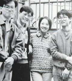 施明德妻子陳嘉君(右二)有雙水汪汪的大眼睛,20年前兩人初次邂逅,施認為兩人年紀差太多,不敢有非分之想,但最后陳嘉君仍擄獲了這位“好色男人”的心。圖為陳嘉君在臺灣東吳大學時期的照片。 來源:臺灣《聯(lián)合報》
