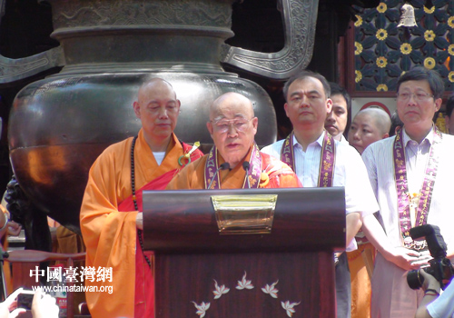 中國佛教協(xié)會會長傳印長老講話(圖片來源:舟山市臺辦)