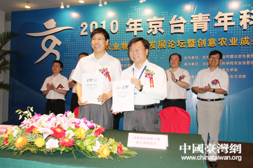 臺(tái)灣農(nóng)訓(xùn)協(xié)會(huì)與北京農(nóng)業(yè)信息技術(shù)研究中心簽署合作交流協(xié)議 (中國(guó)臺(tái)灣網(wǎng) 孫金誠(chéng) 攝)